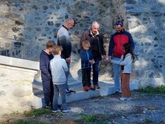 La cérémonie s’est clôturée par la coupure du traditionnel ruban d’inauguration réalisée avec l’aide des enfants de la commune, et le maire a invité les participants à trinquer en l’honneur de cet évènement qui marquait « la possibilité, pour la première fois, de fouler les marches de cet ouvrage magnifiquement restauré ».